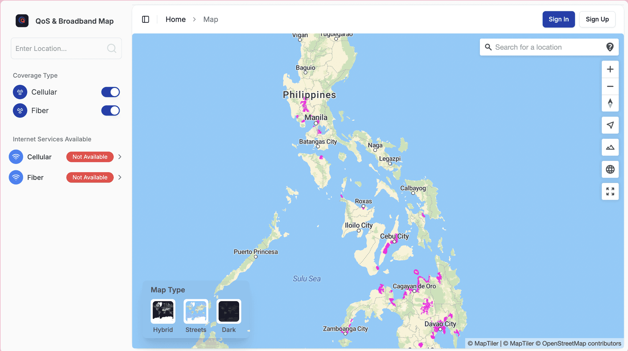 Enabled users to easily filter Cellular and Fiber data with clear toggles, improving readability for the public and NTC staff.